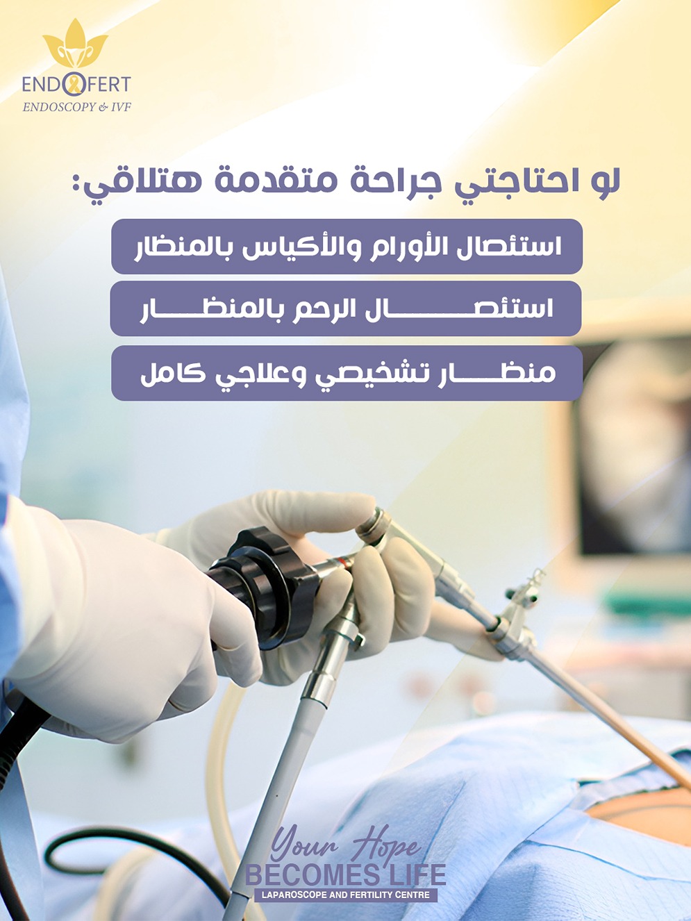 والأهم أن المنظار أصبح اليوم الخيار الأمثل لعلاج معظم مشكلات النساء دون الحاجة إلى جروح كبيرة أو فترة نقاهة طويلة.