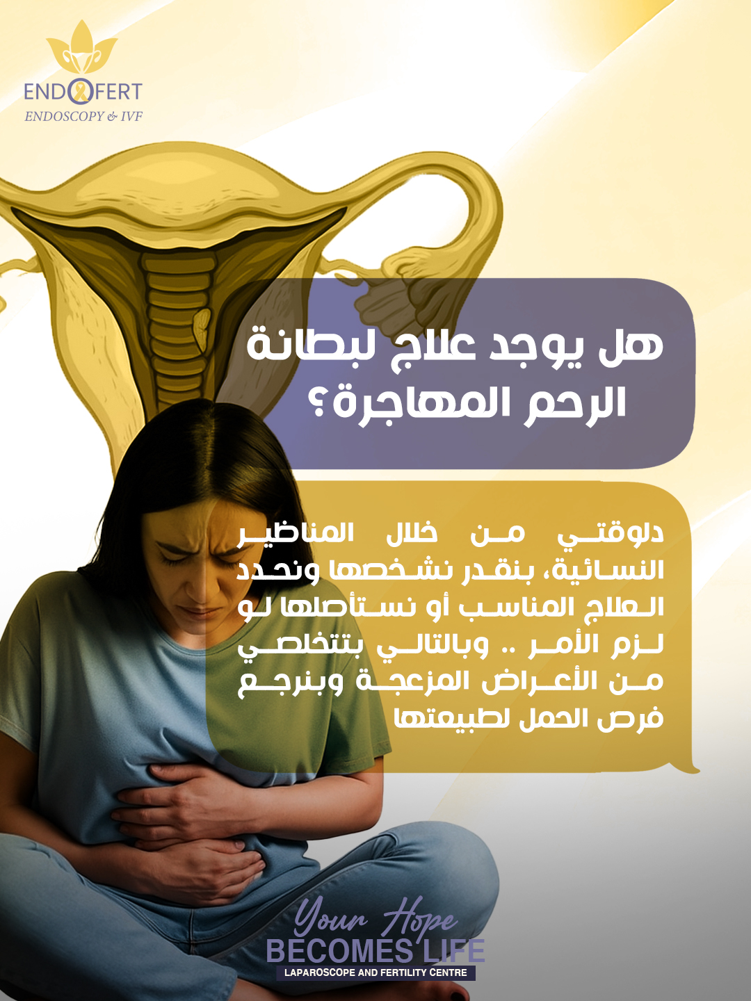 بطانة الرحم المهاجرة تُعد سببًا شائعًا لتأخر الإنجاب، وقد تكون صامتة تمامًا. يعتمد مركز EndoFert على تقييم دقيق وفريق متعدد التخصصات لتحديد أفضل خطة علاج لكل مريضة.