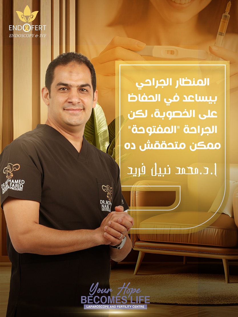 • أثناء الجراحة بالمنظار، يقوم أ.د. محمد نبيل بإدخال أداة رؤية رفيعة (منظار البطن) من خلال شق صغير بالقرب من السرة، ويدخل أدوات جراحية لإجراء التدخل المطلوب من خلال شق صغير إضافي واحد أو أكثر.